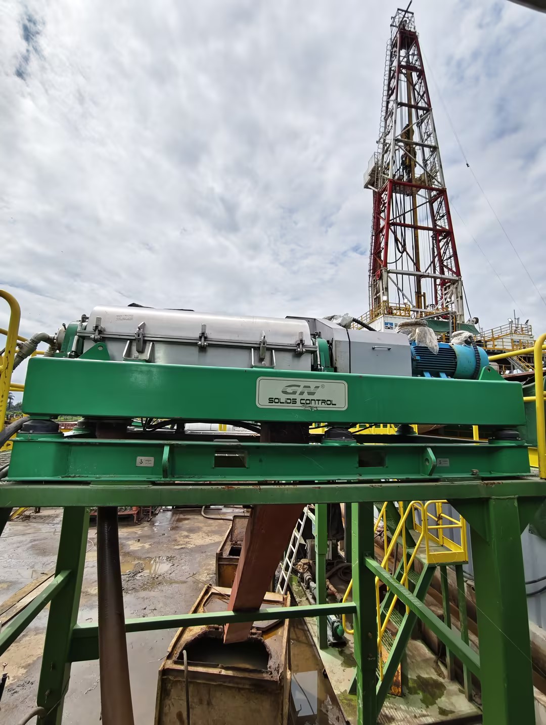 Recently, GN Solids Control successfully delivered one (1) vertical cuttings dryer model GNCD930G and two (2) variable-speed decanter centrifuges model GNLW363D-VFD to an African drilling company. The decanter centrifuges are equipped with electrical variable frequency drives (VFD), allowing precise adjustment of bowl speed and conveyor differential speed. This flexibility enables the centrifuges to adapt to various applications, including fine solids removal, barite recovery, and fluid clarification, under different mud types and operating conditions. The supplied system provides efficient cuttings treatment, reduced environmental impact, and improved overall drilling fluid management for the project.